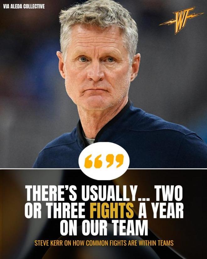 9月18日消息,日前,勇士主教练史蒂夫-科尔在节目中爆料称,勇士队内每年都会打2到3次架,这很正常,但是视频曝光后让球队很被动。
